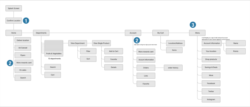 1. Because each department will have different products and deals, the app will ask users to select a location to view the updated information.