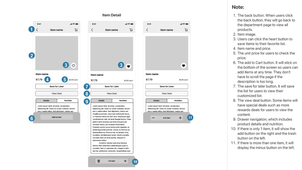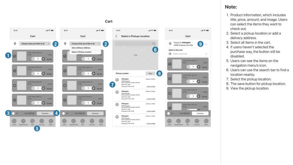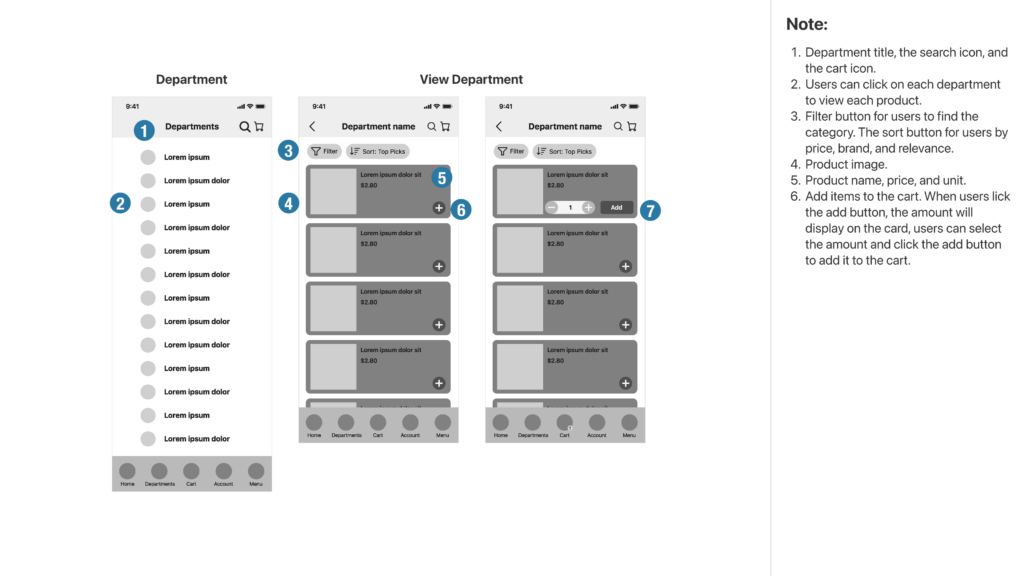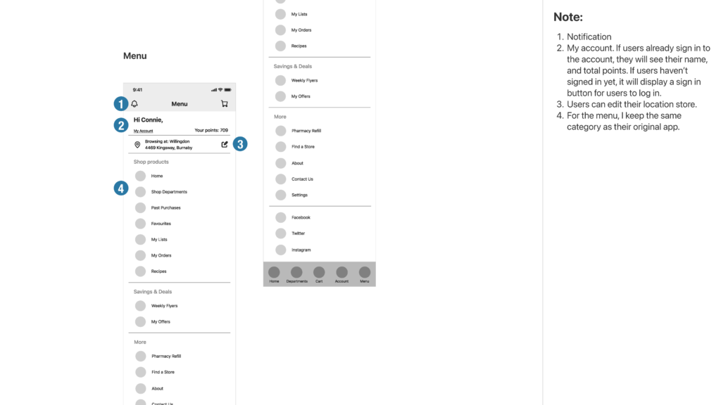 3. I still keep the menu option on the navigation bar because the grocery app has many options and categories. Keeping the menu on the app can help users quickly find their need.