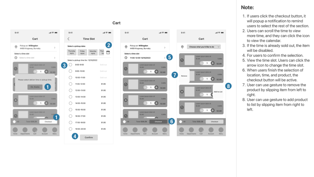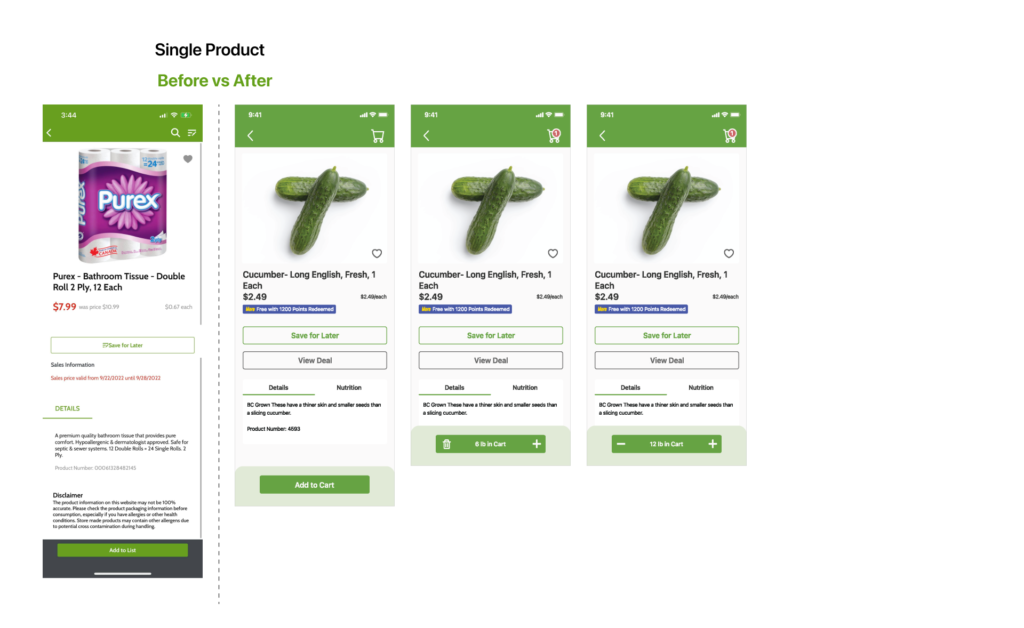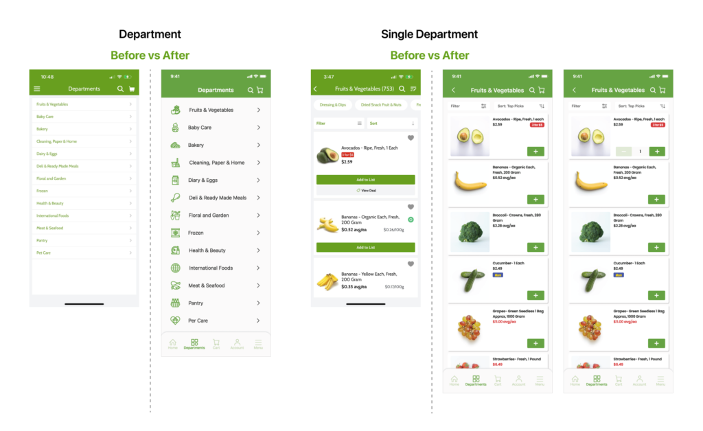 The original app doesn’t have a navigation bar to guide users, which is not a mobile app style. My primary mission was to redesign the app with a user-friendly interface to make it easy to buy groceries.